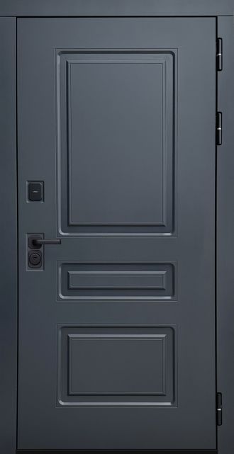 Внешняя отделка: фрезерованная МДФ-панель t=16 мм, с пленкой Vinorit в цвете "Графит" + металл "Черная шагрень"